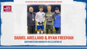 The NCHSAA is committed to recognizing outstanding sportsmanship in each of our State Championship events. The Association has partnered with the North Carolina Farm Bureau to award a pair of Sportsmanship Awards at each championship event, recognizing players who have demonstrated the ideals of outstanding character and sportsmanship throughout the 2024 season. The winners of the 2A Men’s Soccer NC Farm Bureau Sportsmanship Awards were Ryan Freeman from Clinton and Daniel Arellano from Southwestern Randolph.