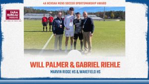 The NCHSAA is committed to recognizing outstanding sportsmanship in each of our State Championship events. The Association has partnered with the North Carolina Farm Bureau to award a pair of Sportsmanship Awards at each championship event, recognizing players who have demonstrated the ideals of outstanding character and sportsmanship throughout the 2024 season. The winners of the 4A Men’s Soccer NC Farm Bureau Sportsmanship Awards were Will Palmer from Marvin Ridge and Gabriel Riehle from Wakefield.