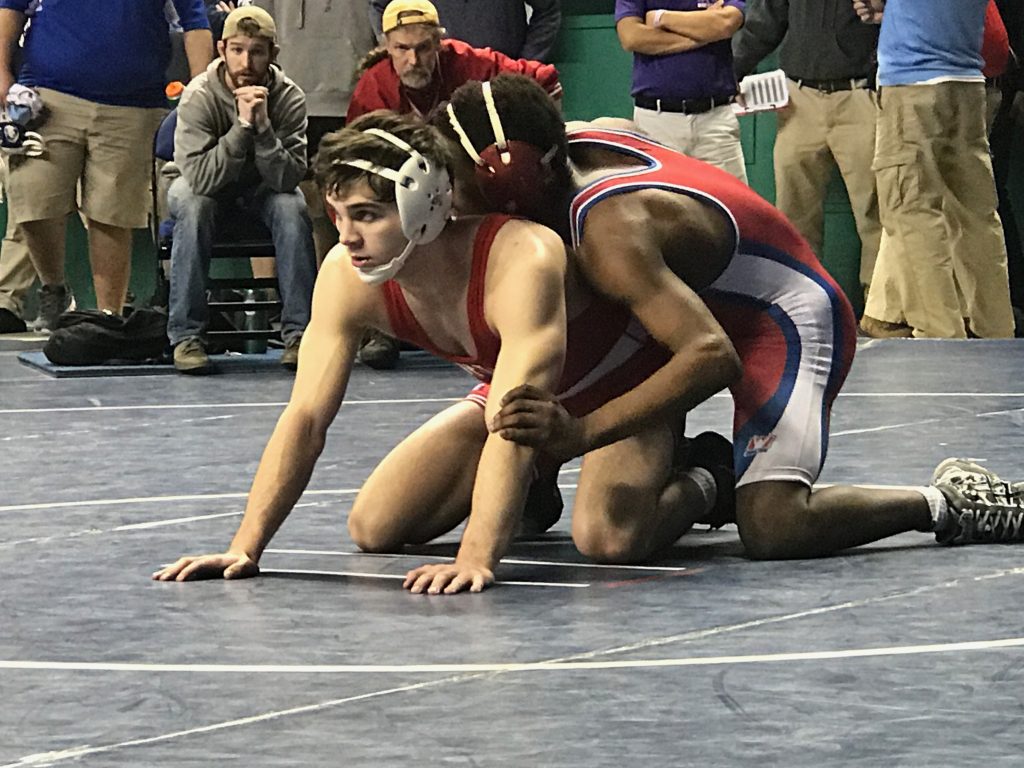 Arien Leigh (First Flight, 39-2) won by decision over Spenser Harris (Newton-Conover, 49-8) (Dec 4-2)