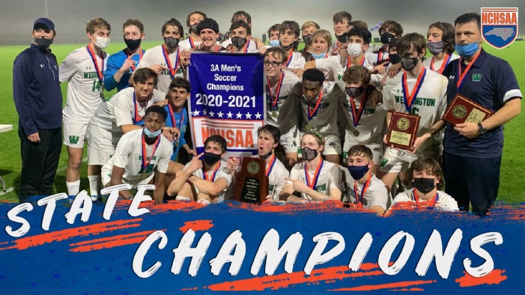 CARY, NC – Weddington got an early goal in the game, but a resilient New Hanover supplied an equalizer in the second half to send the game to overtime. It was nearly déjà vu in the overtime sessions, as the Warriors struck just 18 seconds into the first overtime and had to hold off a furious challenge from the Wildcats in the second overtime to claim the school’s second Men’s Soccer State Championship 2-1.