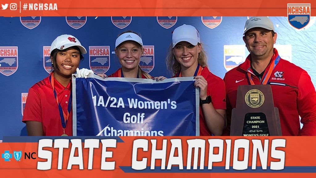 The NCHSAA is committed to celebrating outstanding sportsmanship and has partnered with NC Farm Bureau to award two outstanding athletes in each State Championship event with NC Farm Bureau Sportsmanship Awards. The 1A/2A Sportsmanship Award winners in Women’s Golf for 2021 were Celeste Little from Newton-Conover and Lily Rowe from Raleigh Charter.