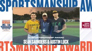 The NCHSAA is committed to recognizing outstanding sportsmanship in each of our State Championship events. The Association has partnered with the North Carolina Farm Bureau to award a pair of Sportsmanship Awards at each championship event, recognizing players who have demonstrated the ideals of outstanding character and sportsmanship throughout the 2024-25 season. The winners of the 1A Baseball Sportsmanship Awards were Sean Saunders from Perquimans and Austin Luck from Uwharrie Charter.