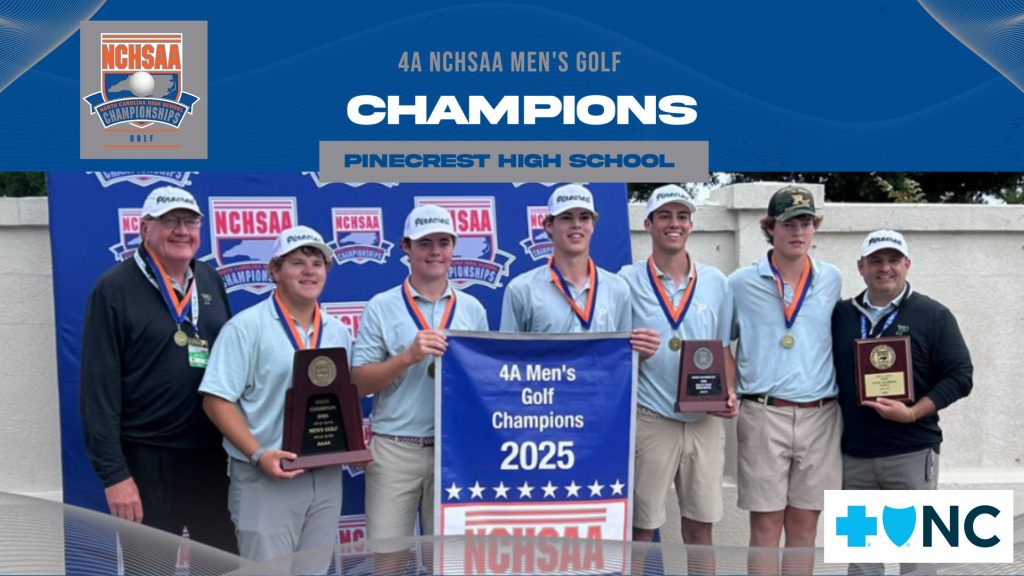 Pinehurst – Pinecrest won its third straight NCHSAA Men’s Golf Championship and ninth overall on Tuesday at Pinehurst No. 8, finishing 14 shots ahead of Broughton in second place.