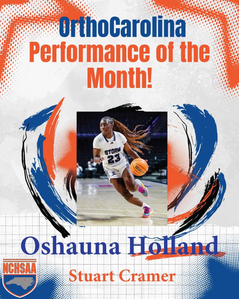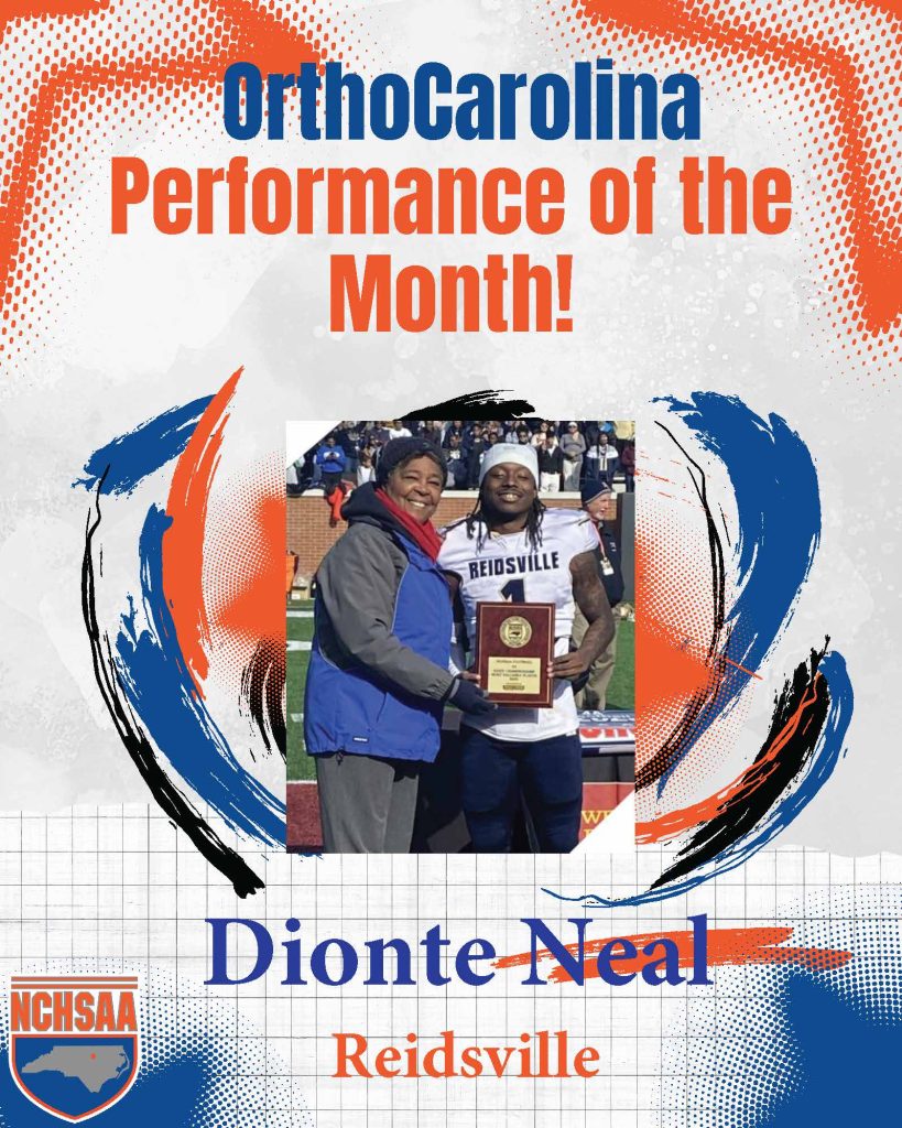 The OrthoCarolina Performance of the Month Awards for December in NCHSAA competition go to Dionte Neal from Reidsville and Oshauna Holland from Stuart Cramer.