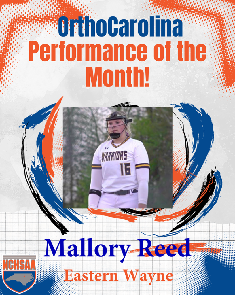 The OrthoCarolina Performance of the Month Awards for March 2026 in NCHSAA competition are Mallory Reed from Eastern Wayne and Brock Bumgardner from Cherryville.