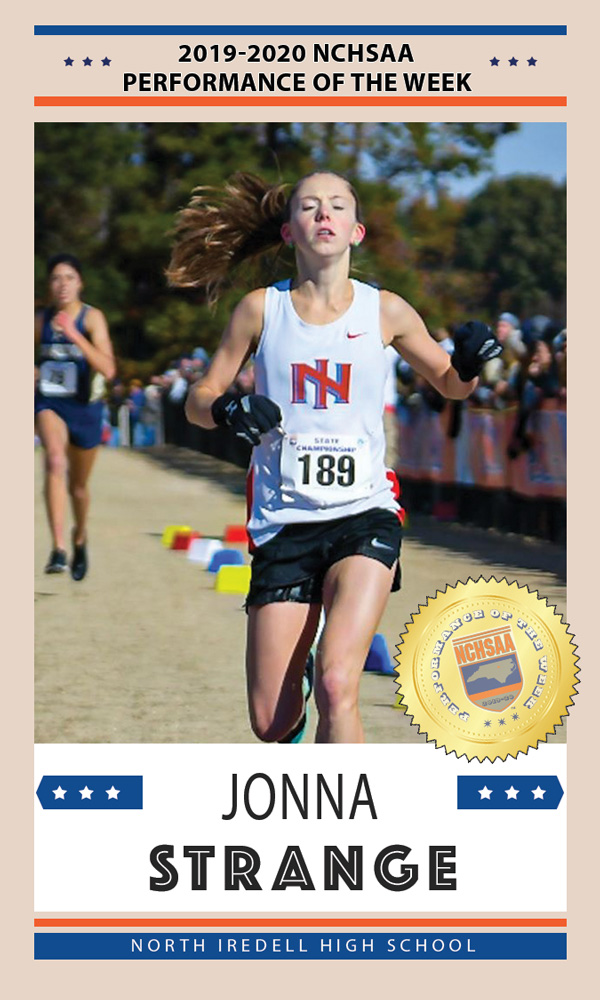CHAPEL HILL— Jonna Strange from North Iredell High School and Ja’Qurious Conley from Northside High School-Jacksonville have been named recipients of the NCHSAA Performance of the Week award. Each week two athletes in North Carolina High School Athletic Association competition are selected for this award from nominations received from coaches, media, and school administrators.