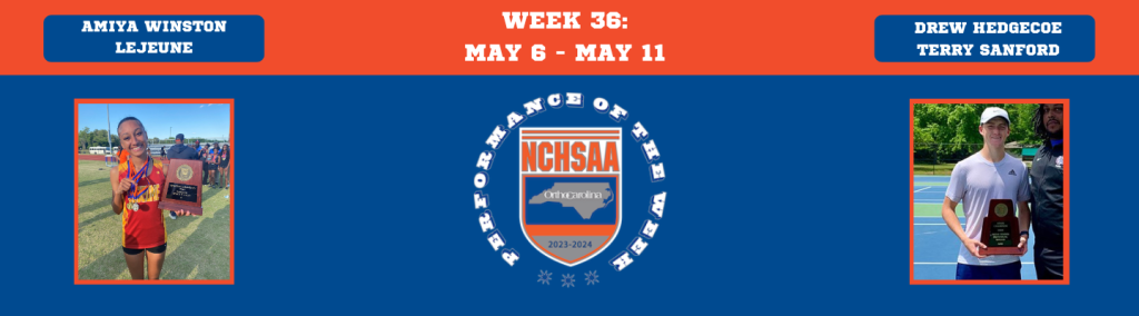 The OrthoCarolina Performers of the Week for week 36 of NCHSAA competition are Drew Hedgecoe from Terry Sanford High School and Amiya Winston from Lejeune High School.